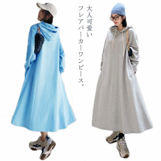 フレアパーカーワンピース ワンピース ショート丈ワンピース レディース 無地パーカーワンピースレディースファッション ワンピース
