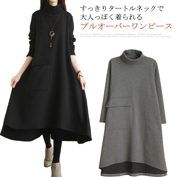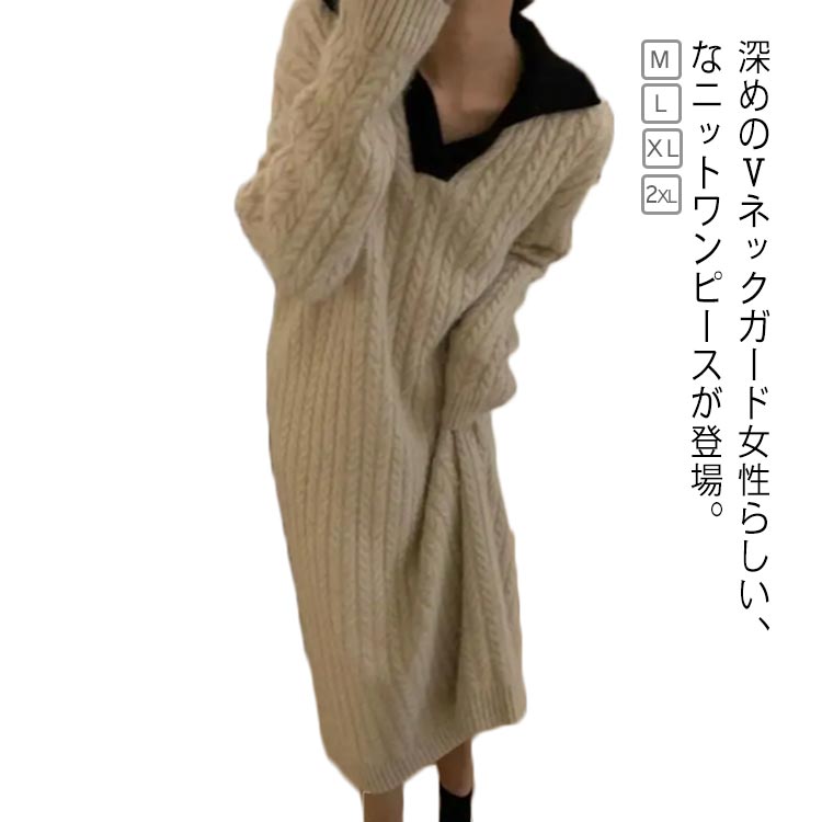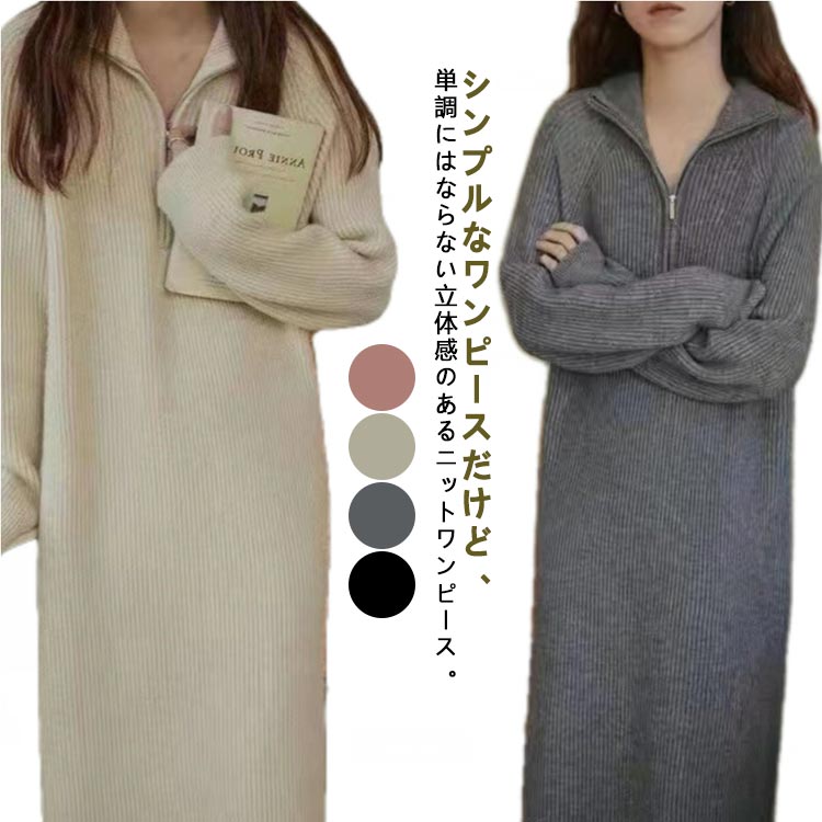 カジュアル 冬 ニットワンピース きれいめ 秋 ネック レディース 長袖 ゆったり ニットドレス ニット