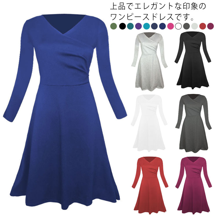 フレア Aライン ロングワンピース レディース 膝下丈 ミモレ丈 シンプル 無地 大きいサイズ きれいめ おしゃれ