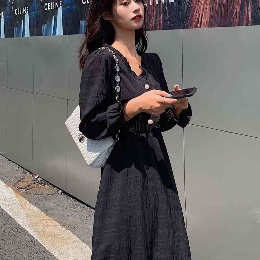 ワンピース ロングワンピース 春秋ワンピース 袖フリル vネック ロング丈 春秋 長袖 森ガール ワンピ カワイイ 通勤 通学 韓国