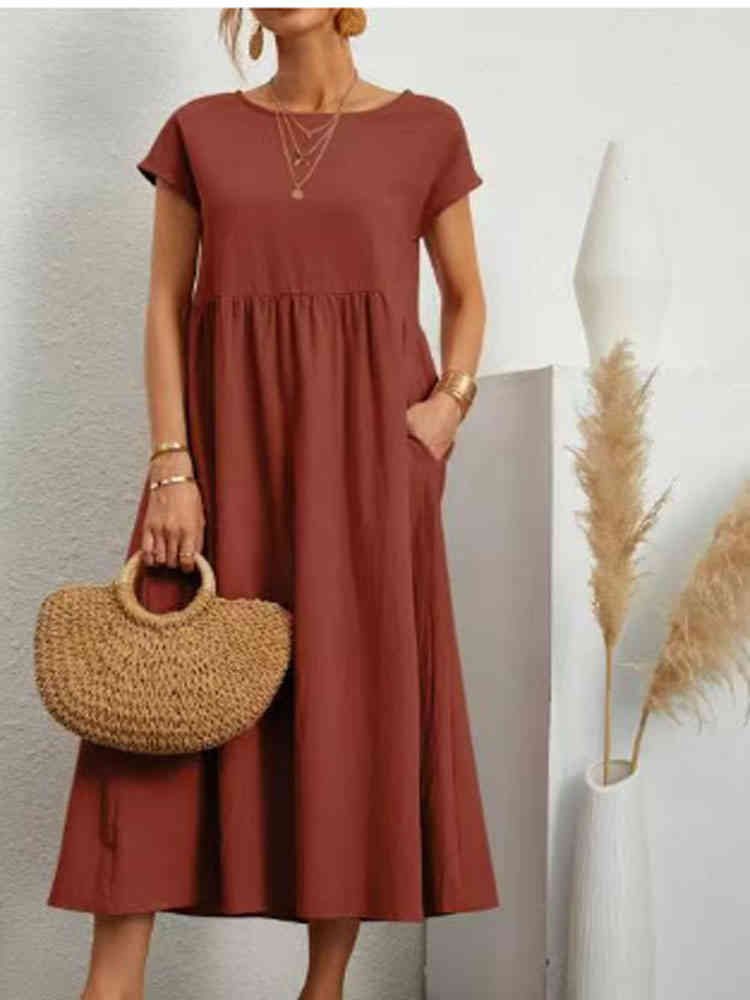ロングワンピース レディース 夏 綿麻風 半袖ワンピース ゆったりレディースファッション ワンピース
