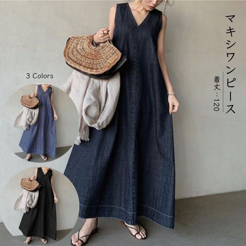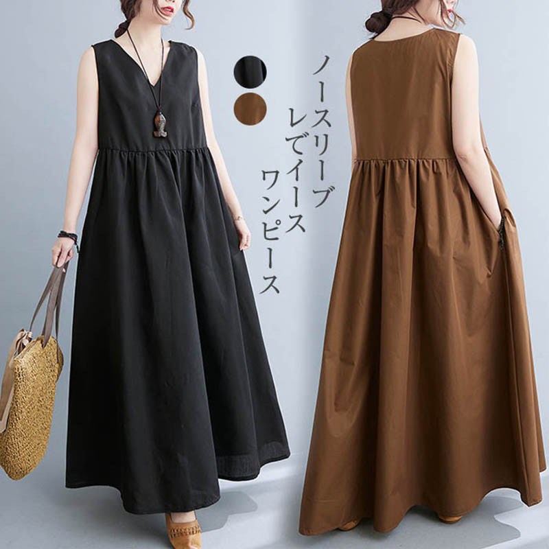 ワンピース 夏 レディース マキシワンピース レディース 夏 ノースリーブ Aライン Vネック ワンピース ノースリーブ ゆったり 体型カバー 20代 30代 40代 50代 母の日