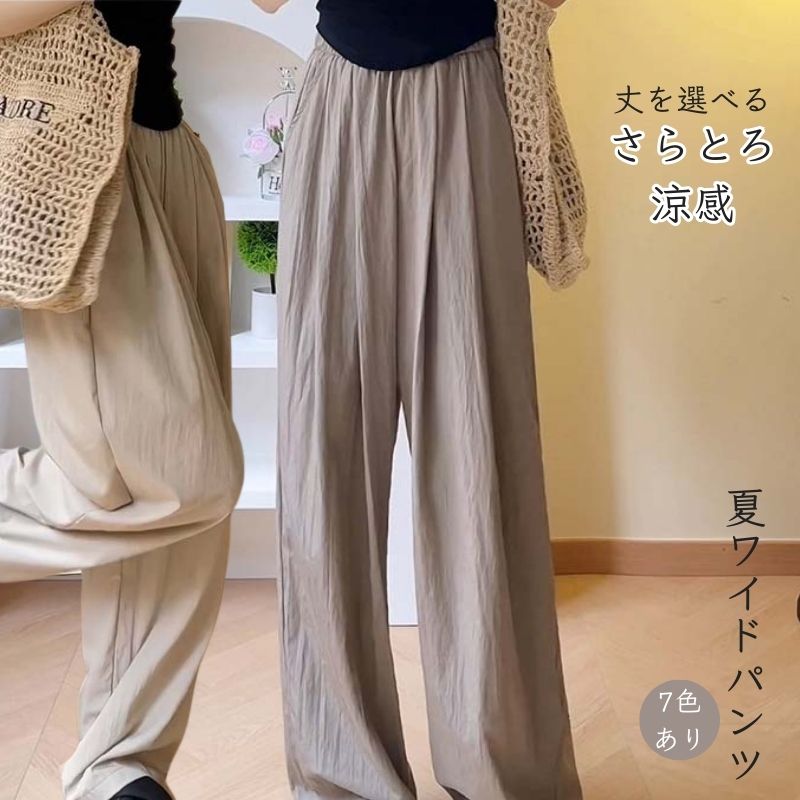 さらとろ涼感ダブルタックワイドパンツ オーバーサイズ 体型カバー ひんやり ロング 低身長 高身長 春 夏 レディース プリーツ 涼しい