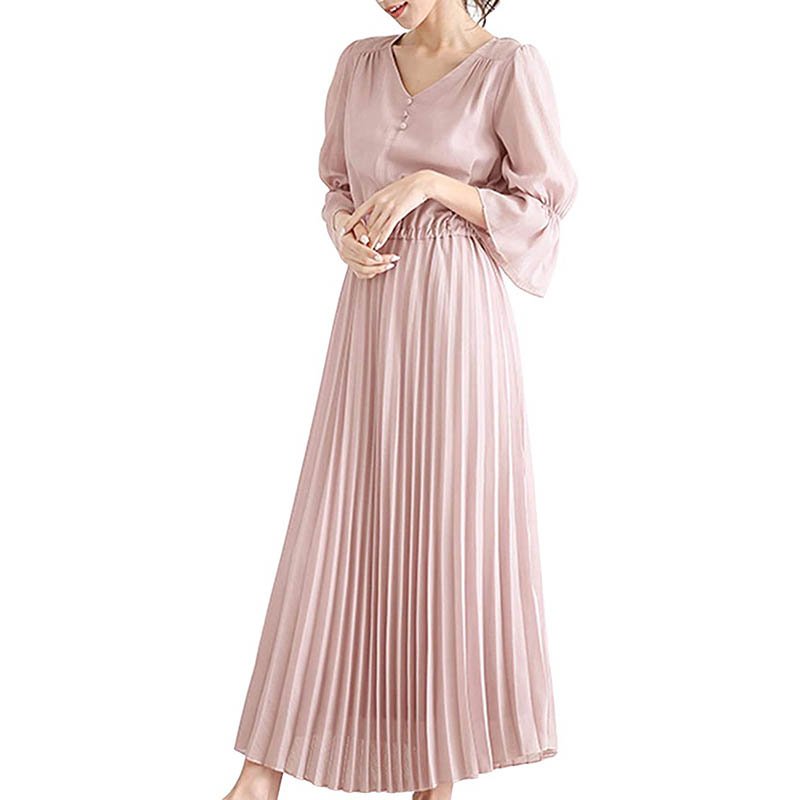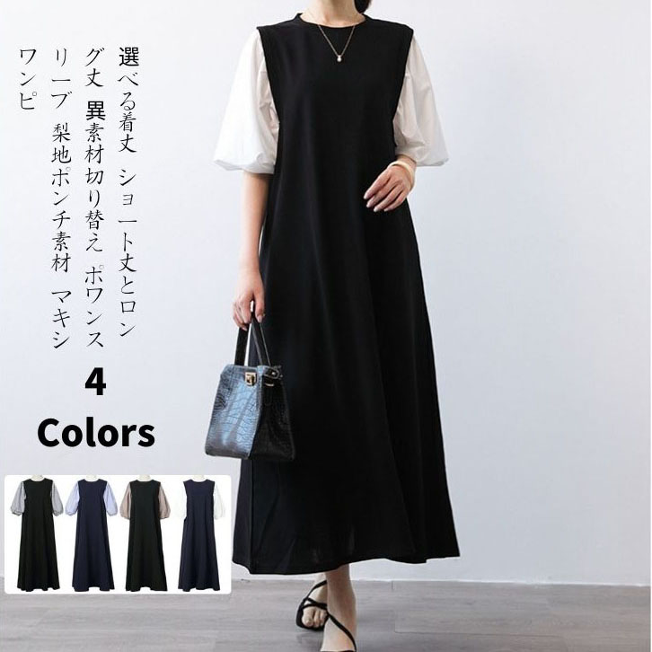 ロングワンピース ぽわん袖 ワンピース ボリューム袖 ロングワンピ マキシ 膝下 レディース 春夏 オールインワン マタニティ ワンピース きれいめ オフィス 仕事 ゆったり