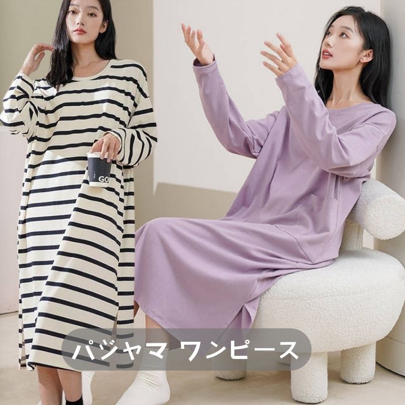 寝巻き ナイトウェア ゆったり 涼しい 柔らかい 快適 大きいサイズ 春 夏 薄手 無地 シンプルレディースファッション ワンピース