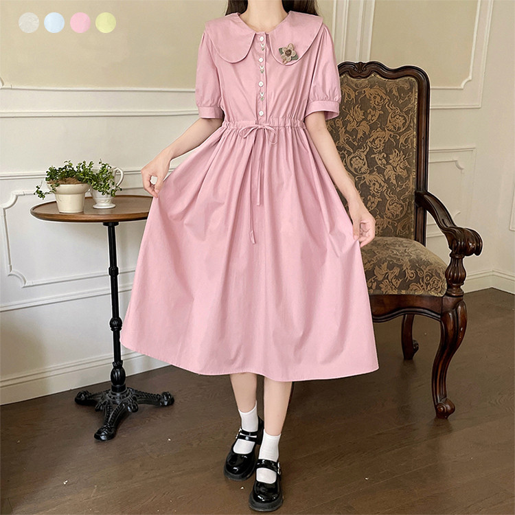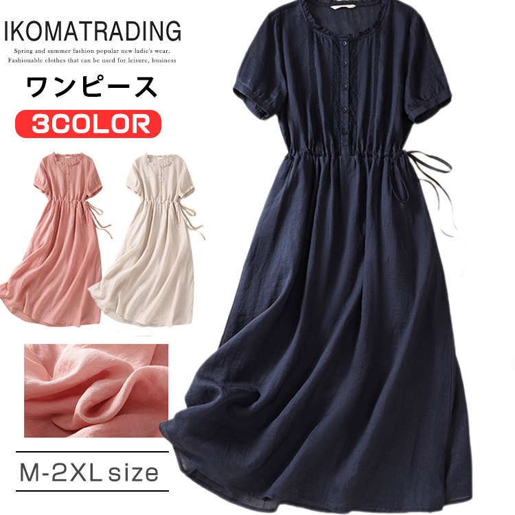 ロングワンピース 半袖 無地 綿 麻 仕事 夏 リネンワンピース カジュアル おしゃれ マキシ丈レディースファッション ワンピース