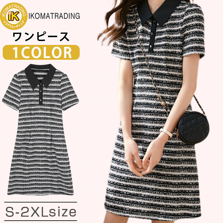 半袖ポロ ワンピース ボーダー ポロ襟 着痩せ ポロシャツワンピース プレゼント 母の日 夏レディースファッション ワンピース