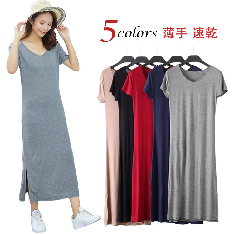 ワンピース ロング スリップ プルオーバー 伸縮性 サイドスリットレディースファッション ワンピース