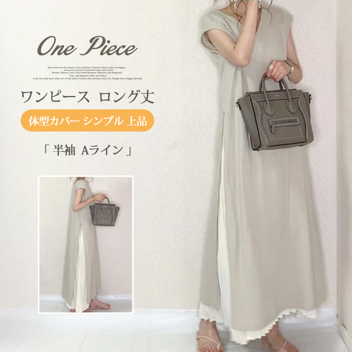 ワンピース レディース ロングワンピース 無地 マキシ丈 マキシワンピース サマードレス ロング 半袖 シフォン Aライン おしゃれ カジュアル 体型カバー シンプル 可愛い きれいめ 上品