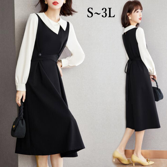 ワンピースレディース長袖切替ロングワンピースロング丈 膝丈 ミディアム 大きいサイズフォマール二次会入学式 卒業式 パーティー 発表会 同窓会春秋23