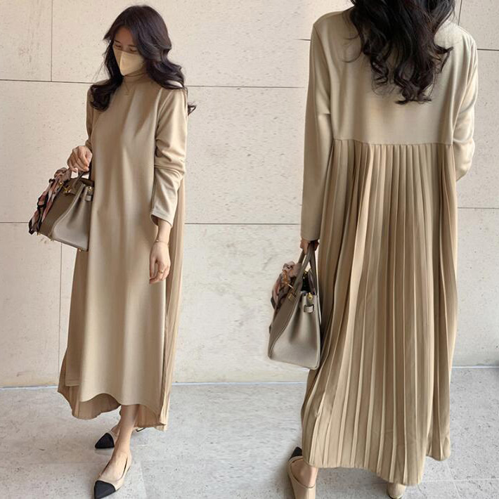プリーツワンピーストレーナー スウェット プルオーバー パーカーロングマキシ丈 Aライン 長袖大きいサイズ春秋