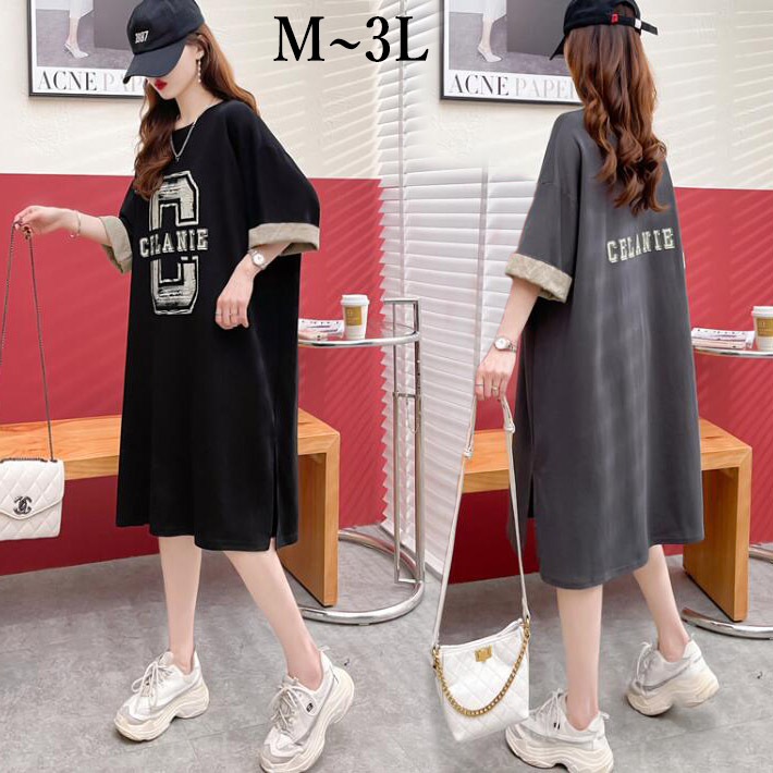 Tシャツワンピースコットンオーバーサイズ ゆったりTシャツチュニックロングTシャツ ロゴワンピース半袖ミニワンピース ルームウェア大きいサイズクルーネック夏ML 2L3L
