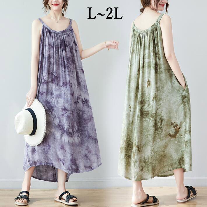 ワンピース マキシワンピース 春 夏 ロングノースリーブ きれいめ 花柄 ポケットキャミワンピースロングワンピースキャミきれいめ Aライン 重ね着 大きいサイズ リゾート春 夏L2L
