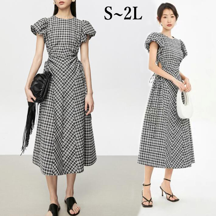 ワンピースロングチェックバルーン袖 レディース夏レディースファッション ワンピース