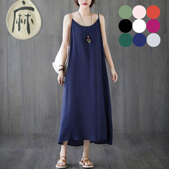 サロペットスカート ジャンパースカー オールインワン 綿麻ワンピース重ね着 無地 ロング丈 マタニティー 体型カバー ロング レディース 大きいサイズ大人ゆったり 春夏23