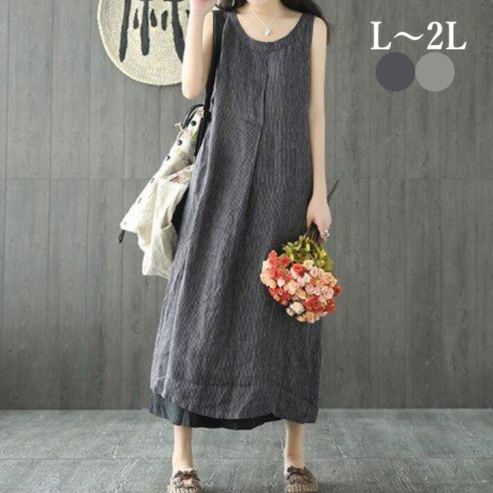 ワンピースロングワンピースリネン綿麻ワンピロングマキシ丈切替カジュアルゆったりAライン ノースリーブ 大人きれいめ 夏ML2L3L