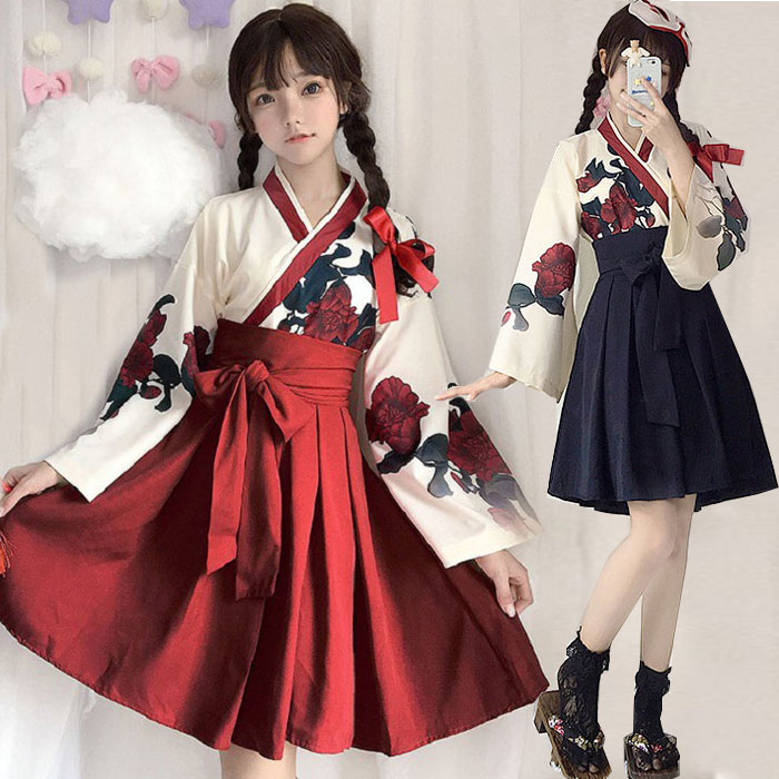 ハロウィン 仮装 イベント Cosplay コスプレ 袴 コスチューム 花柄 レディース 2点セット