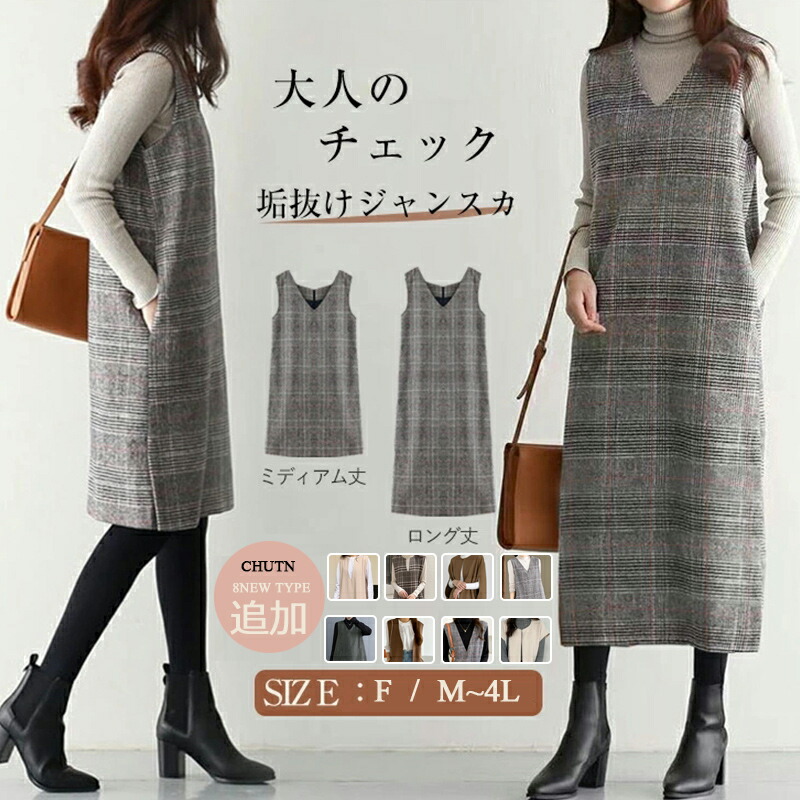 選べる9タイプゆるっとカジュアルだけどちょっと大人っぽいシルエット♪ジャンパースカート ロング Vネック 大きいサイズ オフィス 秋 冬 春 オールインワン ギフト プレゼント
