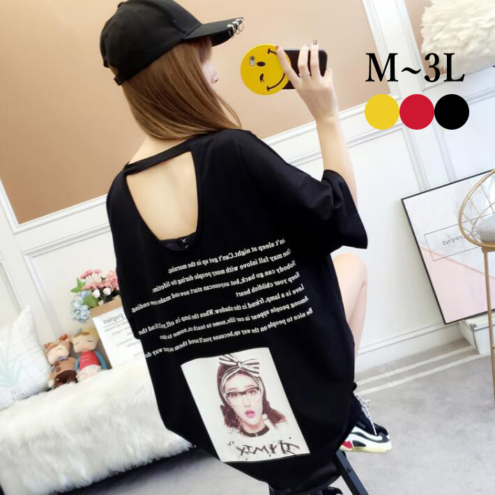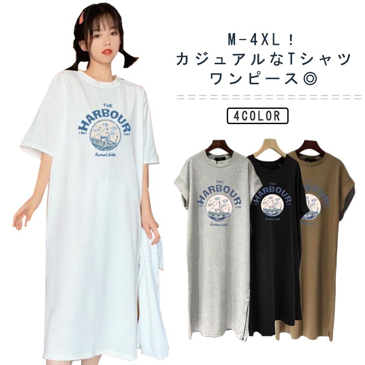 コットンTシャツワンピーススリットチュニックTシャツロンクTシャツ ロゴワンピース半袖5分袖膝丈 チュニック大きいサイズクルーネック ルームウェアビッグシルエットML 2L3L