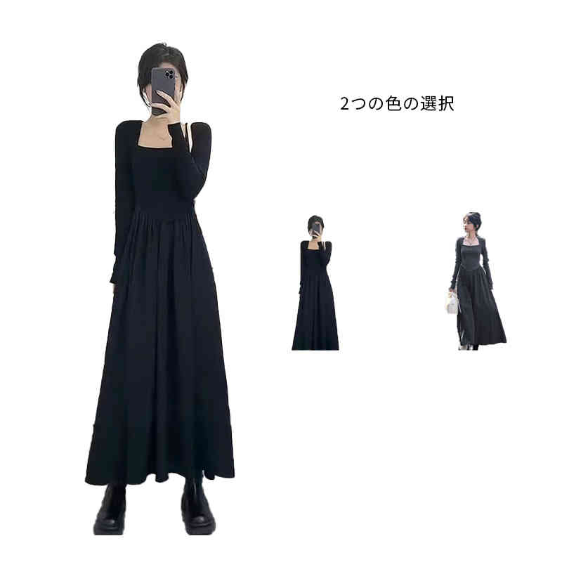 レディース 春夏 フレアワンピース おしゃれワンピース ワンピース ロングワンピ ロング丈 長袖 きれいめ ワンピ 無地 可愛い
