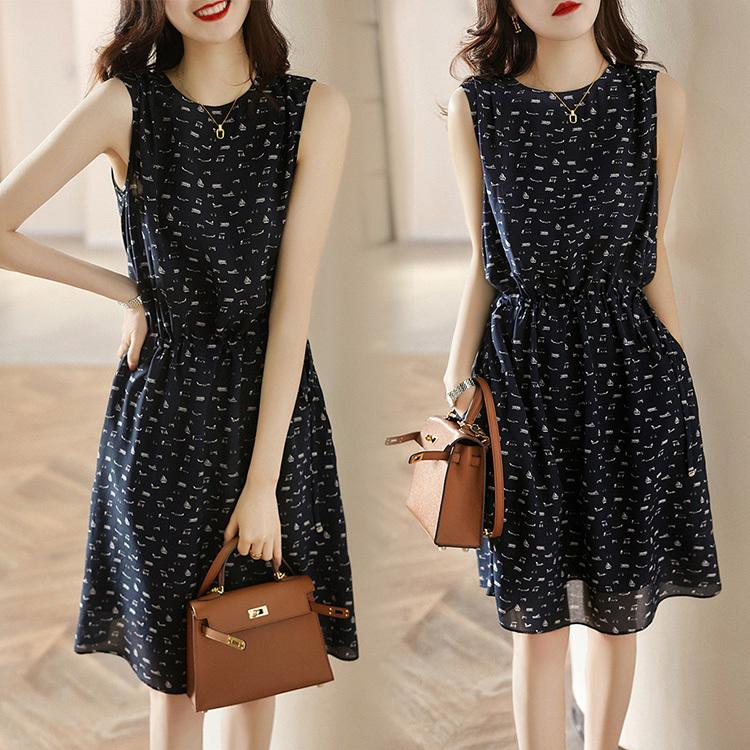 ワンピース レディース 40代 きれいめ 膝丈ワンピース 春夏新作 ノースリープワンピース 花柄シフォン Aラインスカートオシャレ韓国風 大人 通勤OL ゆったり