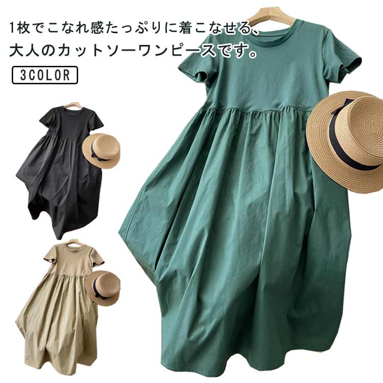 半袖 レディース ロングワンピ 夏 ワンピース シャーリング タイレディースファッション ワンピース
