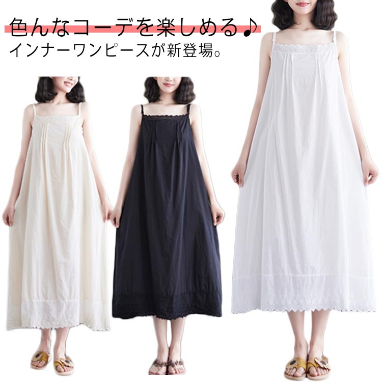 ぺチワンピース 裾レース 綿 キャミソールワンピース ペチコート ワンピース ロンレディースファッション ワンピース
