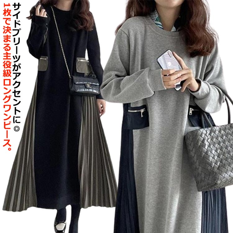 スウェットワンピース 長袖 マキシ丈 レディース オーバーサイズ サイドプリーツレディースファッション ワンピース