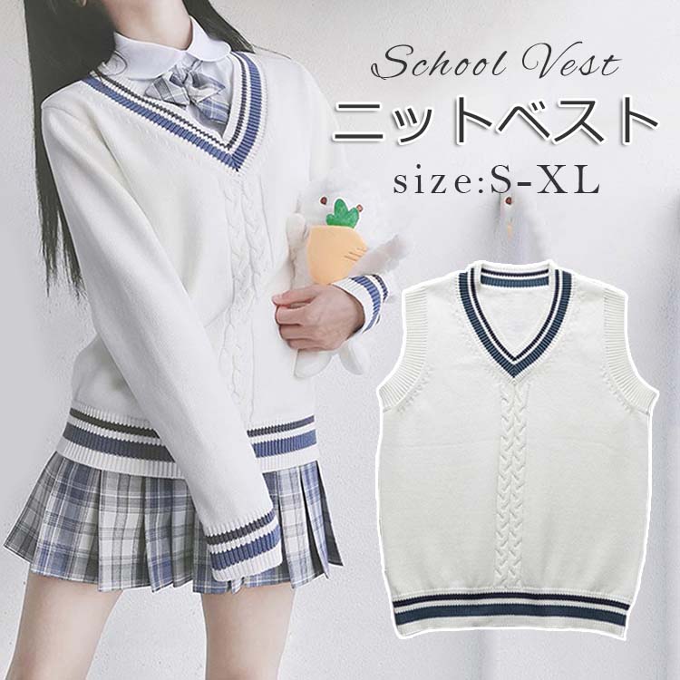 ニットベスト スクール 女の子 vネック スクールベスト 女の子 韓国風 サマーニット 夏用 コットン衣装 ニット スーツ 無地 トップス