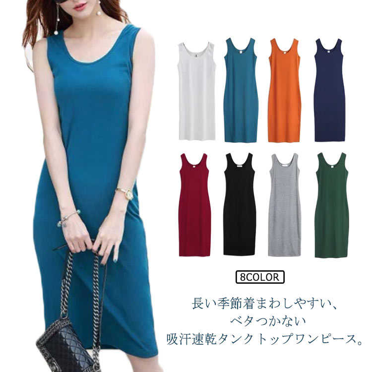 吸汗速乾 インナー タンクトップ ペチコート 透けない 落ち感 インナーワンピース タンクトップ のびのび 伸縮性 春 ロングワンピース
