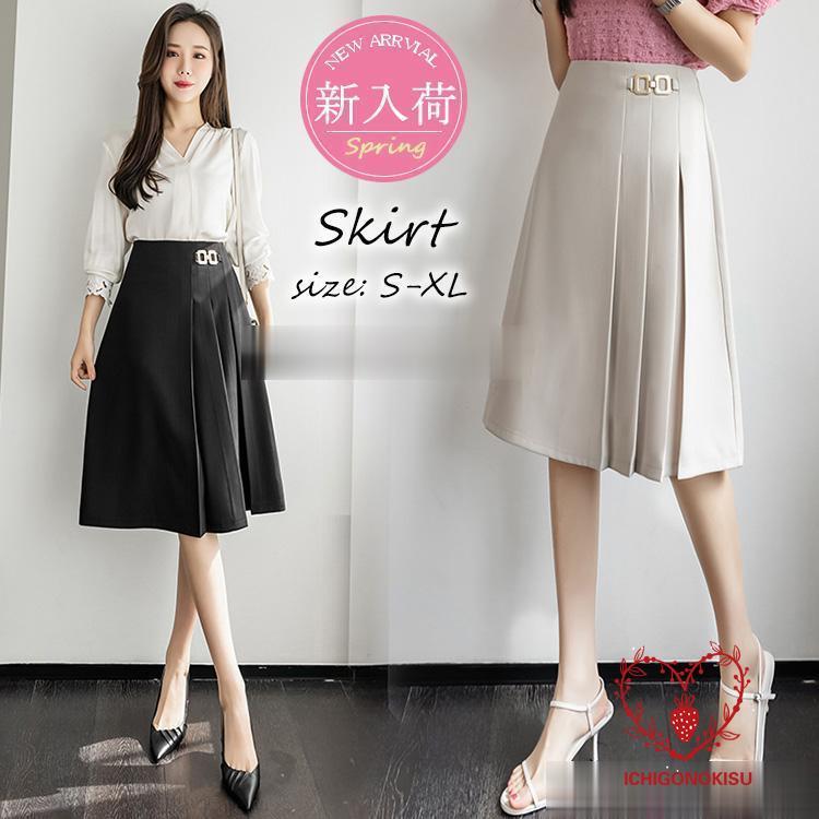スカート ロング 春夏 aラインスカート 黒 プリーツスカート レディース 40代 膝丈スカート ハイウェストボトムス 大人 オフィス 通勤OL オシャレ体型カバー