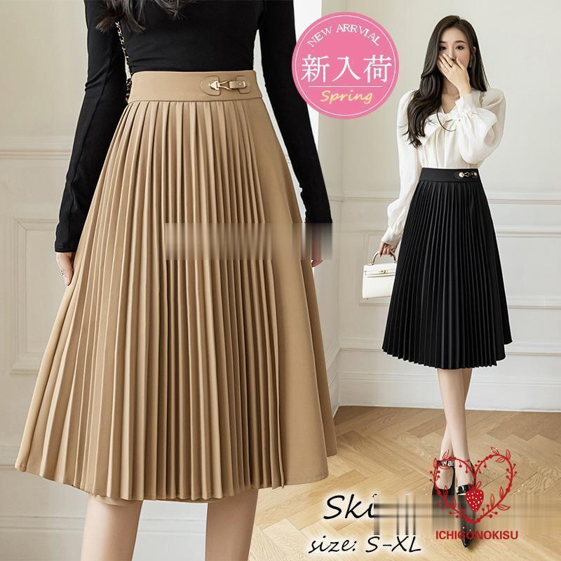 スカート ロング 春夏 プリーツスカート 黒 aラインスカート レディース 40代 膝丈スカート ハイウェストボトムス 大人 オフィス 通勤OL オシャレ体型カバー