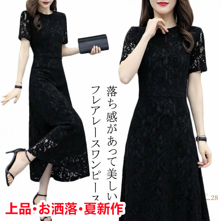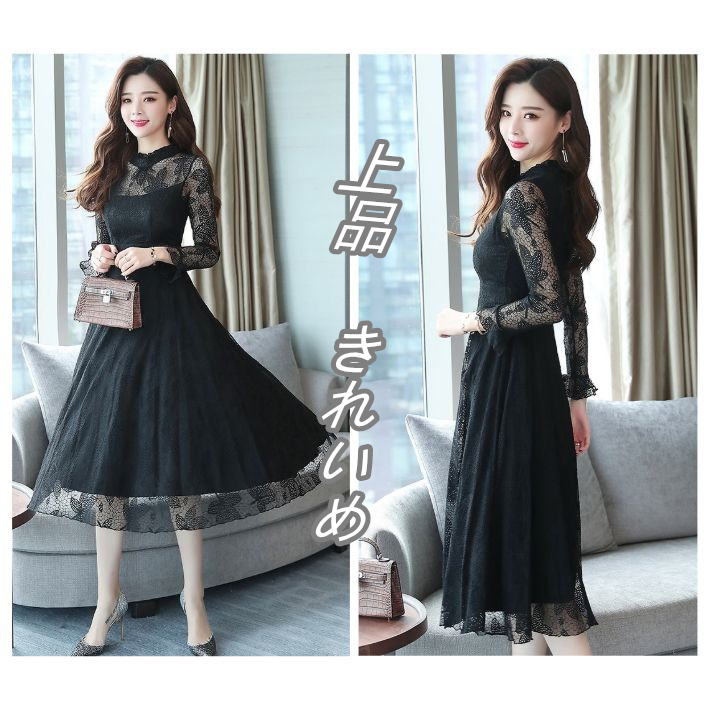 ブラック レース 大人 二次会 通勤 レース 入学式 ワンピースレディースファッション ワンピース