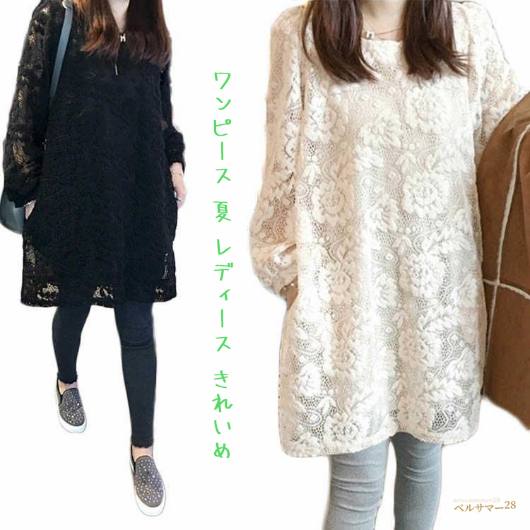 立体的花柄が大注目レースワンピース ポケット付きで便利 ワンピース 総レースワンピース 膝上 長袖 ワンピース レディース チュニックワンピース きれいめ 20代 30代 40代