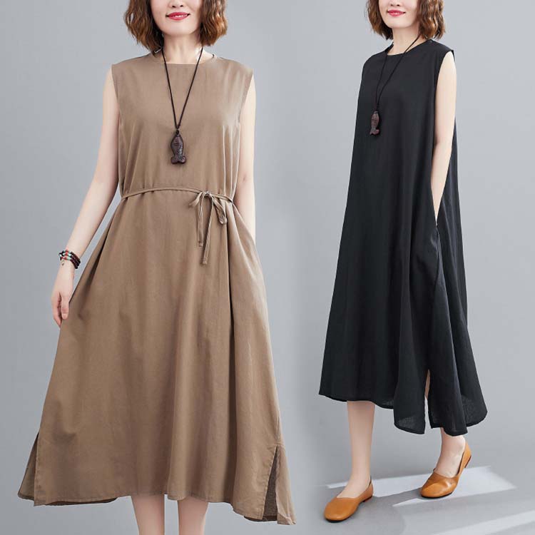 ワンピース 夏 レディース きれいめ ロング ミモレ ノースリーブ ミモレ丈 袖なし 大きいサイズ ワンサイズ フリーサイズ 2colors 無地 腰締め 着痩せ 体型カバー マタニティ