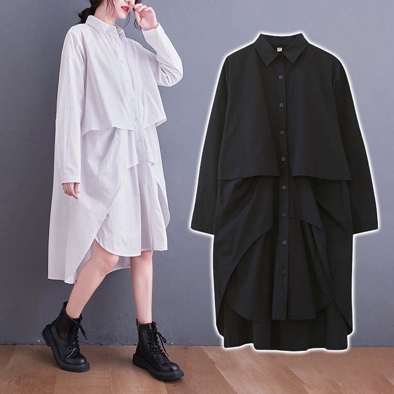 シャツワンピース 夏 ロング 長袖 きれいめ レディース 大きいサイズ インレギュラー デザイン感 折り襟 無地 ワンピース 夏 レディース きれいめ 膝丈 ワンサイズ フリーサイズ