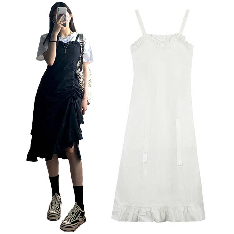 ワンピース 夏 レディース きれいめ ロング丈 黒 白 vネック 折り襟 フレンチスリーブ ノースリーブ 袖なし 2colors ワンサイズ フリーサイズ ゆったり 大きいサイズ 無地