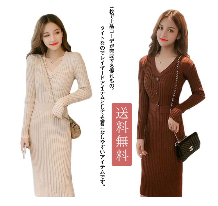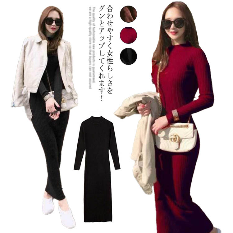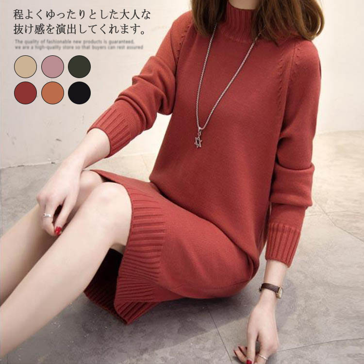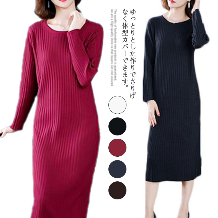 ニット ワンピース タイト ロング ロング丈 ニットワンピース チュニック 秋冬 レディース ニットワンピ きれいめ 大人 セーター 冬 長袖 膝丈 無地