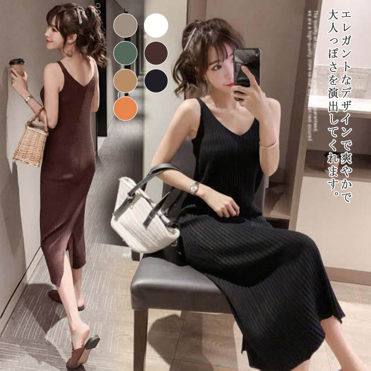 ニット キャミソール キャミソールワンピ ミディアム丈 ロングキャミ 大人 20代 30代 40代 ワンピース レディース ニットワンピース ひざ丈