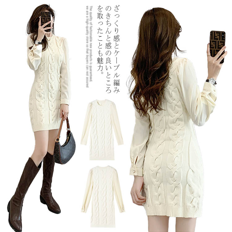ニットワンピース 秋冬 ロング 30代 40代 大人 長袖 レディース きれいめ シンプル ケーブルニットワンピース ケーブル編み ワンピース ワンピ チュニック