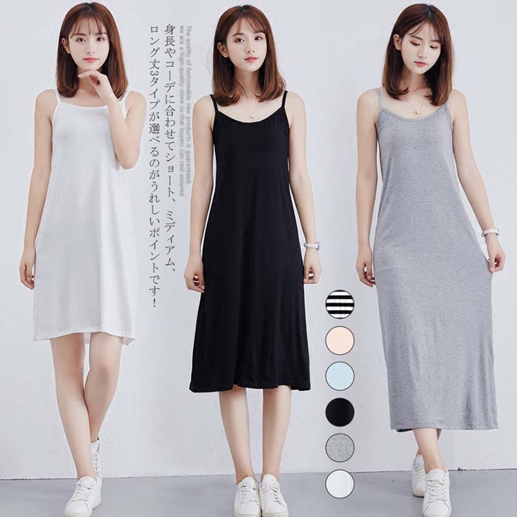 全6色×3丈 インナーワンピ キャミソールワンピース ボーダー 無地 ナイト ルームウェア ペチコート ロング ショート 膝丈 レディース 部屋着