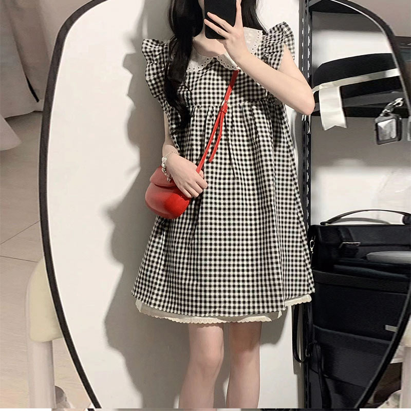 丸襟 ワンピース Aライン チェック柄 ドレス 長袖 膝丈 レディース 日常レディースファッション ワンピース