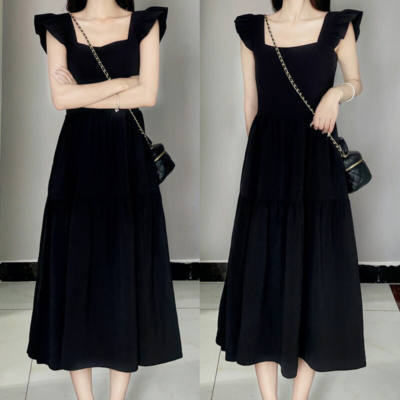 ワンピース レディース フリル スカート 袖なし ぽっちゃり 黒 ブラックレディースファッション ワンピース