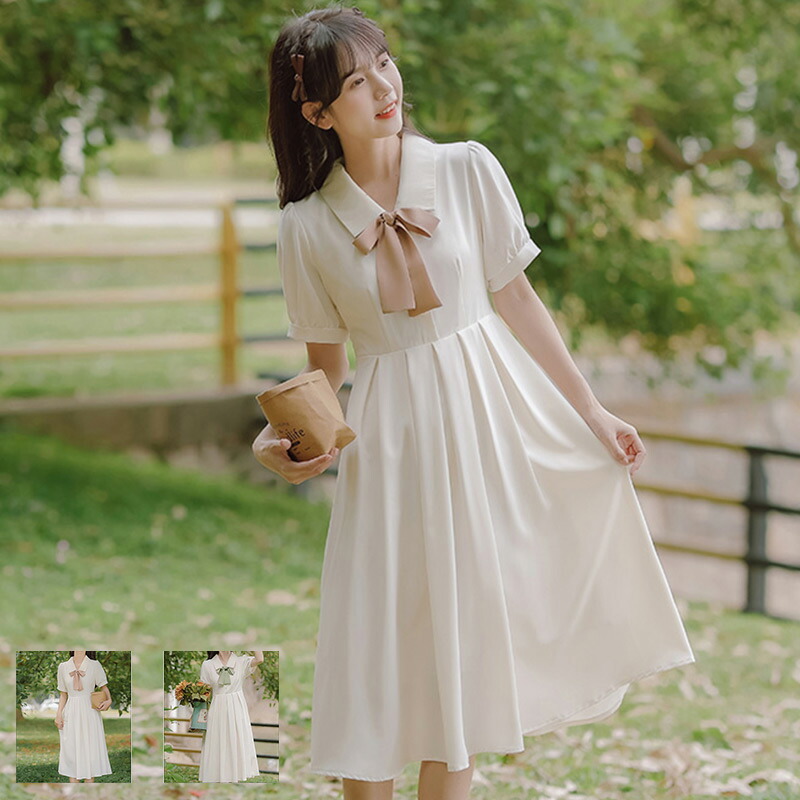 蝶結びワンピース プリーツワンピース サマーワンピース 半袖ワンピース 姫系レディースファッション ワンピース