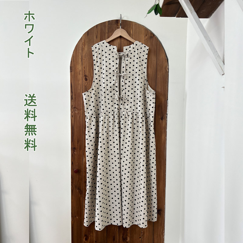 ベストワンピース レディース ベスト ワンピース ラインワンピース アウター 春 ドット柄 ロング丈 大きいサイズ ゆったり 華奢見え ふんわり 体型カバー お出かけ 通勤 通学 春秋 おしゃれ フ