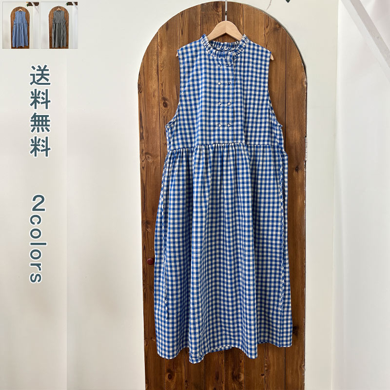 ベストワンピース レディース ベスト ワンピース ラインワンピース アウター フレア フレアワンピース フレアスカート 春 チェック柄 ロング丈 大きいサイズ ゆったり 華奢見え ふんわり 体型カバ