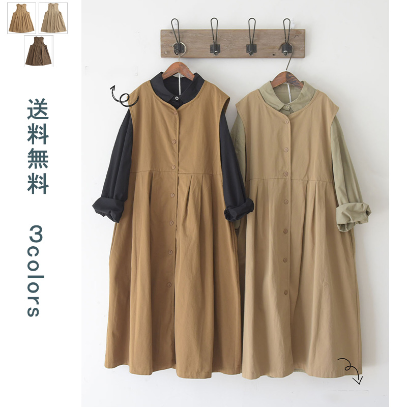 ベストワンピース レディース ベスト ワンピース Aラインワンピース アウター フレア フレアワンピース フレアスカート 春 無地 ミドル丈 大きいサイズ ゆったり 華奢見え ふんわり 体型カバー お
