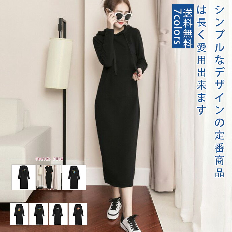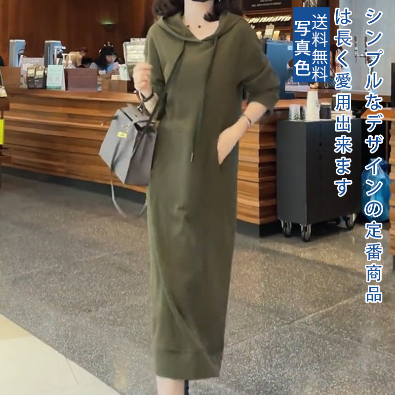 マキシ丈パーカーワンピース レディース 長袖 ロング スエットレディースファッション ワンピース