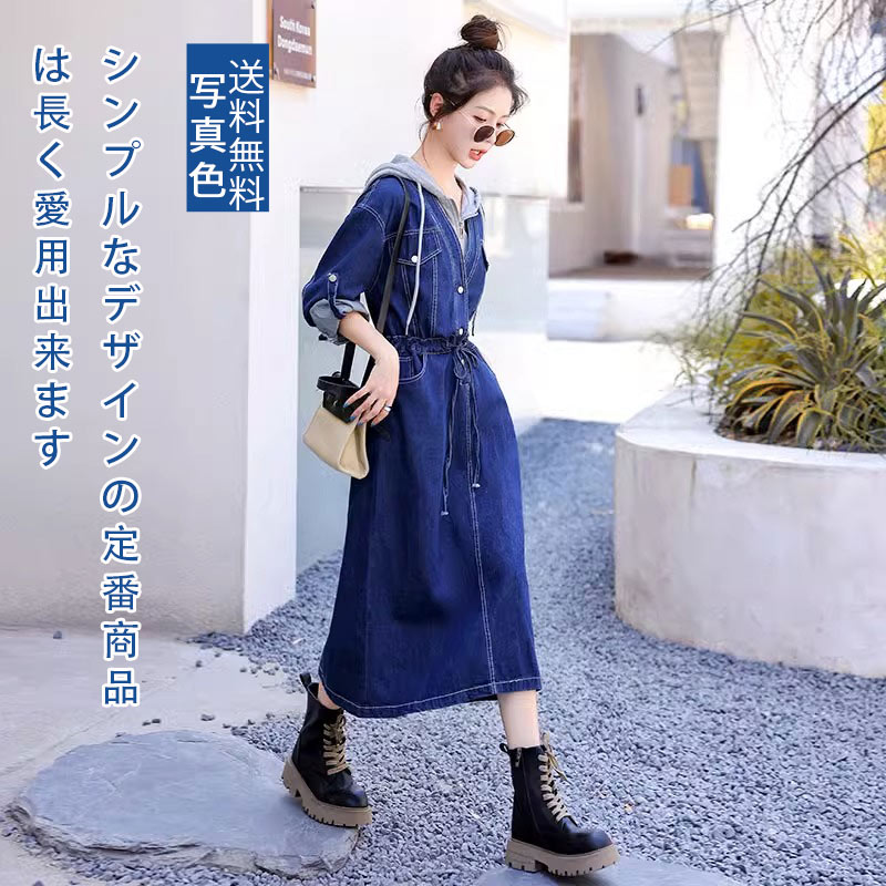 デニムワンピース 大人 長袖 細見え デート お出かけ 普段着レディースファッション ワンピース