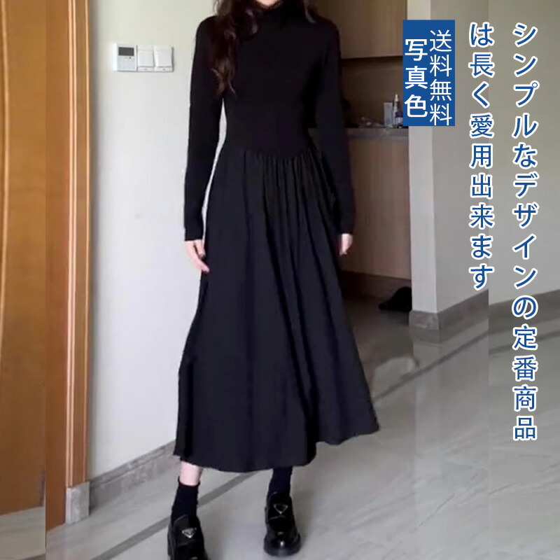 可愛いのに細見えするウエスト ワンピース 長袖 切り替え レディース 秋新作 黒 大人可愛い レディースファッション 着痩せ